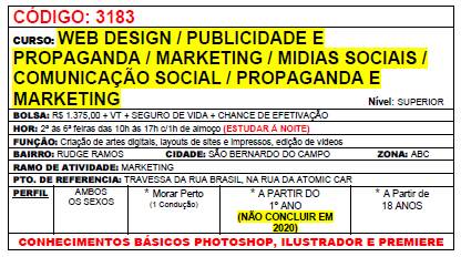 Vagas de Estágio/Emprego