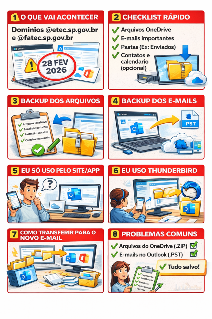 ⚠️ ATENÇÃO: backup obrigatório do e-mail institucional e OneDrive