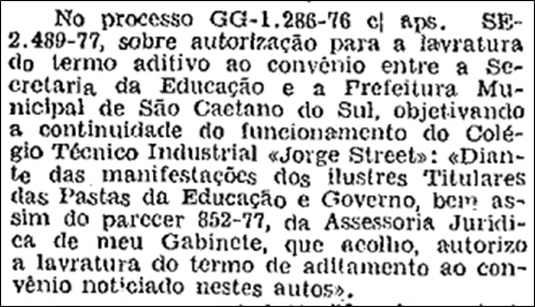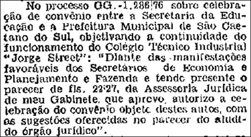 Aprovo do Governador sobre a celebração do convênio: Publicado no D.O. em 05 de agosto de 1976: