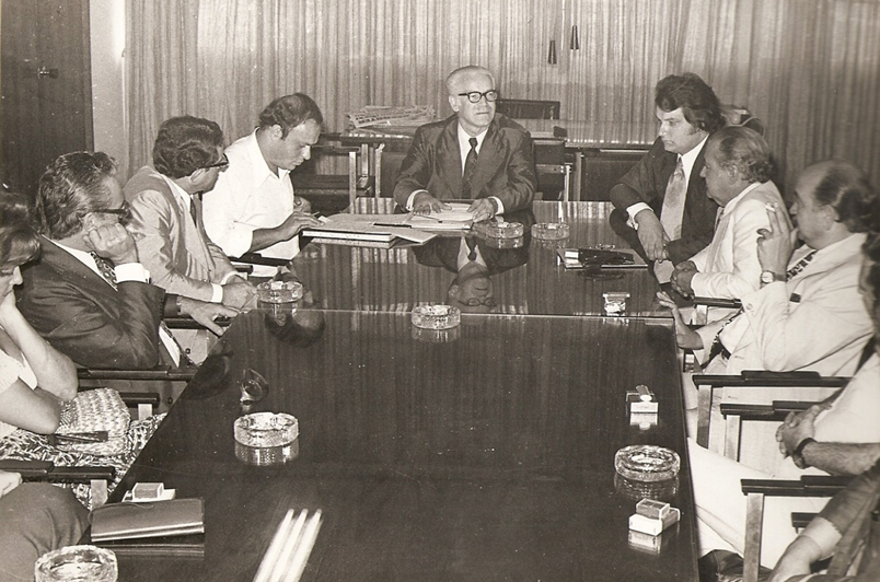 A foto abaixo é da primeira reunião do Conselho Técnico Administrativo. Com o Profº Erasmo de Freitas Nuzzi como presidente do conselho (ao centro).