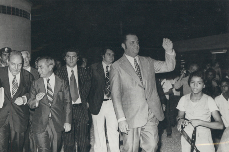 Fotos da cerimônia de inauguração da Escola. O corte da faixa foi feito pelos senhores Aldino Pinotti, Ubirajara Garcia e o Profº Erasmo Freitas Nuzzi.