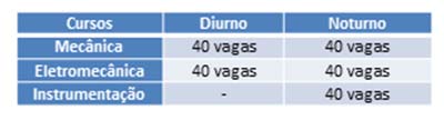 Mediante o que dispões a Lei 5.692/71 e coerente com as necessidades da comunidade a quem a Escola deve servir, foram oferecidas três habilitações profissionais a nível de 2º grau: Técnicos em Mecânica, Eletromecânica e Instrumentação.