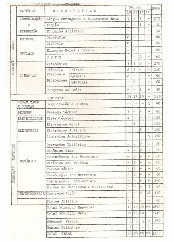 Currículo do curso de Eletromecânica – Período: Noturno - 1975