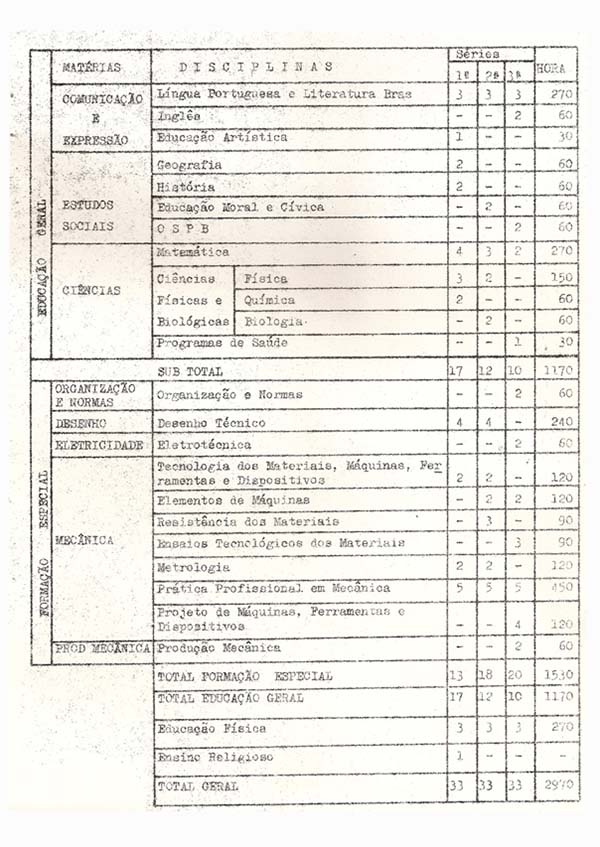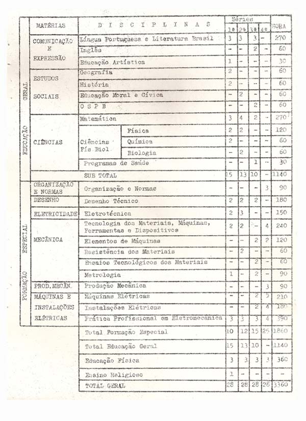 Currículo do curso de Eletromecânica – Período: Diurno - 1975