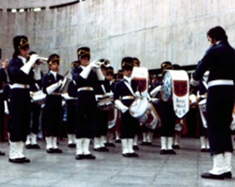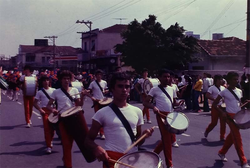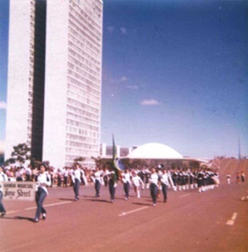 A foto abaixo mostra uma apresentação durante o desfile de 7 de setembro de 1977, ainda sem uniforme próprio para a banda.