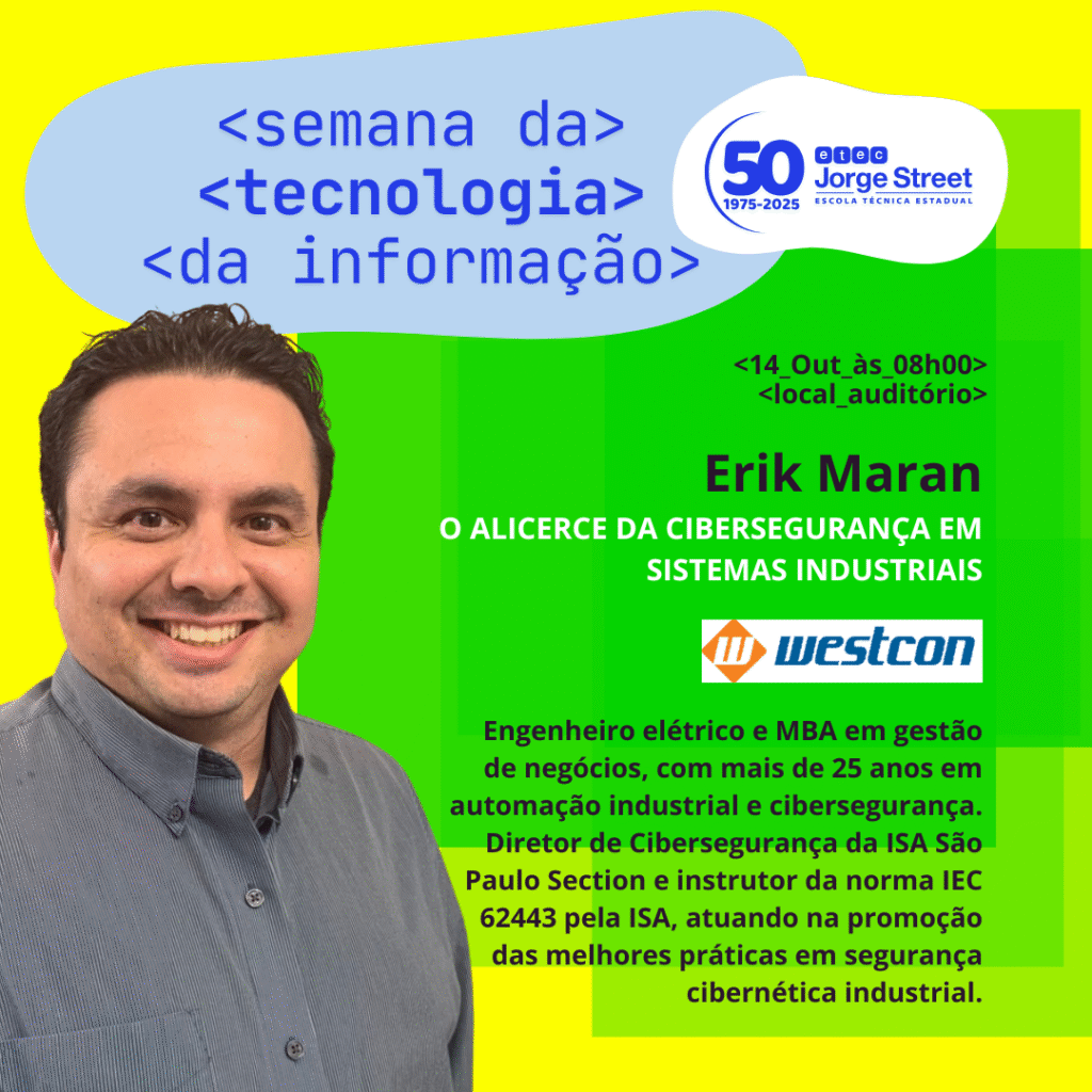 tema da palestra: O Alicerce da Cibersegurança em Sistemas Industriais
