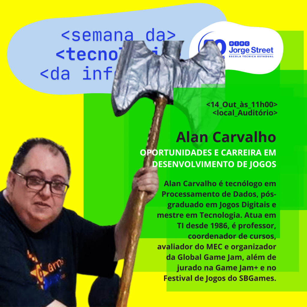 tema da palestra: Oportunidades e carreira em desenvolvimento de jogos