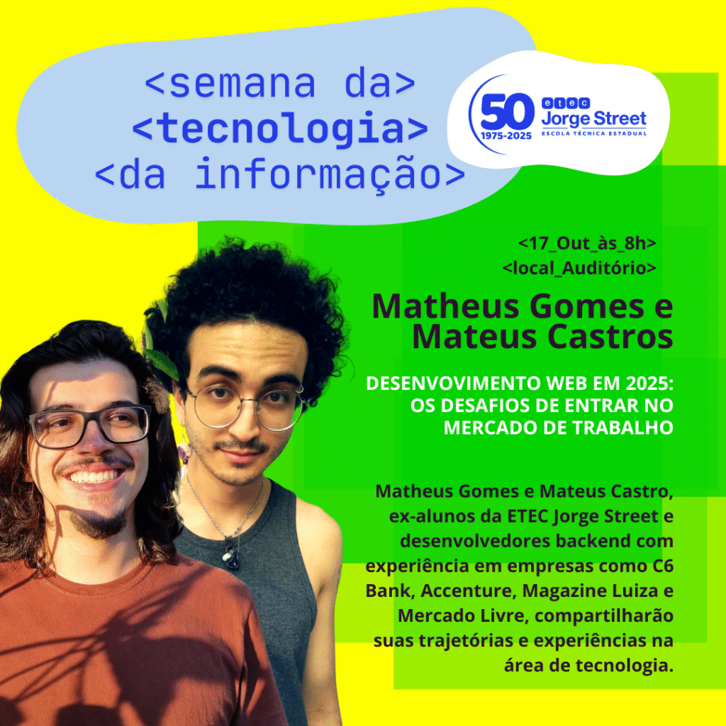 tema da palestra: Desenvovimento web em 2025: os desafios de entrar no mercado de trabalho